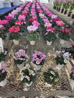 大人気のつるた特選シクラメンは6号鉢栽培も加わり、充実しております。